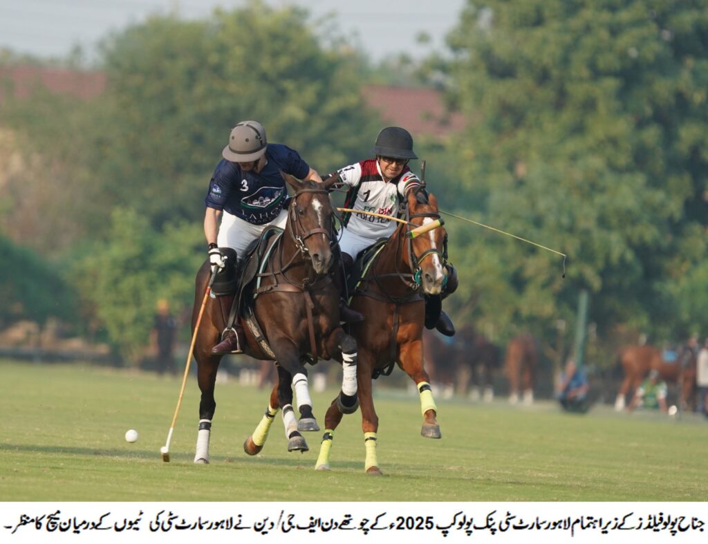 FG/Din secured their place in the main final after defeating Lahore Smart City 10–4, while Diamond Paints qualified for the subsidiary final with a commanding 10–5 win over Indus Polo on the fourth day of the Lahore Smart City Pink Polo Cup 2025 at the Jinnah Polo Fields. Club Secretary Major (R) Adil Rao and other officials were present on the occasion. In the first match, a brilliant display by Hamza Mawaz Khan guided FG/Din to victory. Hamza struck six goals, while Abbas Mukhtar added three and Sheikh Muhammad Rafiq contributed one. For Lahore Smart City, Saqib Khan Khakwani scored three goals, and Alman Jaleel Azam netted one. In the second match, Diamond Paints overpowered Indus Polo 10–5 to reach the subsidiary final. Displaying excellent teamwork and precision, Jalal Arslan and Mir Huzaifa led Diamond Paints’ charge with four goals each, while Rabeel Noman added two to complete a convincing victory. For Indus Polo, Ibrahim Khalil scored twice and Pir Danish added one, along with two handicap goals in their total. The grand final of the Lahore Smart City Pink Polo Cup will be played on Sunday between FG/Din and Master Paints. *MATCH SUMMARY* *Main Final Qualifier* FG/Din beat Lahore Smart City 10–4 FG/Din: Hamza Mawaz Khan (6), Abbas Mukhtar (3), Sheikh Muhammad Rafiq (1). Lahore Smart City: Saqib Khan Khakwani (3), Alman Jaleel Azam (1). *Subsidiary Final Qualifier* Diamond Paints beat Indus Polo 10–5 Diamond Paints: (Jalal Arslan 4, Mir Huzaifa 4, Rabeel Noman 2) Indus Polo: (Ibrahim Khalil 2, Pir Danish 1) 2 handicap goals.