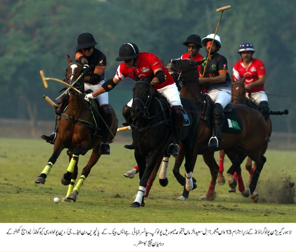 Rijas/Sheikhoo Steel and FG/Din Polo secured their places in the main final after winning their respective semifinals on the fifth day of the 13th Major General Saeed uz Zaman Janjua Memorial Polo Cup, sponsored by JS Bank, being held under the auspices of the Club (Lahore Garrison Polo Ground). On Friday, a large number of spectators and families gathered at the Pakistan Park Polo Ground, Cavalry, to witness the high-intensity semifinal clashes. The event was also attended by Club Secretary Major (R) Babar Mehboob Awan along with other officials.The opening semifinal delivered a nail-biting contest as Rijas/Sheikhoo Steel defeated Diamond Paints/Din by 6–5 to clinch the first berth in the final.For Rijas/Sheikhoo Steel, Mohib Faisal Shehzad emerged as the standout performer with an impressive hat-trick. Raja Samiullah added two goals, while Malik Ali Quli Khan contributed one.Diamond Paints/Din fought hard, with Raja Jalal Arsalan scoring twice and Mir Shoaib Ahmed, Mir Huzaifa Ahmed, and Saim Abbas netting one goal each, but their efforts ultimately fell short.In the second semifinal, FG/Din Polo displayed dominant form as they overcame SQ Seagold/Newage Cables with a convincing 10–6 victory.Star striker Hamza Mawaz Khan led from the front, scoring a remarkable seven goals, while Abbas Mukhtar and Sheikh Muhammad Raffay added two and one goal respectively.For SQ Seagold/Newage Cables, Shiraz Qureshi impressed with four goals, and Saqib Khan Khakwani contributed a brace, but the team was unable to contain FG/Din’s aggressive offensive play.*MATCH SUMMARIES**Semifinal 1*Rijas/Sheikhoo Steel 6–5 Diamond Paints/DinRijas/Sheikhoo Steel:Mohib Faisal Shehzad – 3Raja Samiullah – 2Malik Ali Quli Khan – 1Diamond Paints/Din:Raja Jalal Arsalan – 2Mir Shoaib Ahmed – 1Mir Hazuifa Ahmed – 1Saim Abbas – 1*Semifinal 2*FG/Din Polo 10 – 6 SQ Seagold/Newage CablesFG/Din Polo:Hamza Mawaz Khan – 7Abbas Mukhtar – 2Rafay Sheikh – 1SQ Seagold/Newage Cables:Shiraz Qureshi – 4Saqib Khan Khakwani – 2